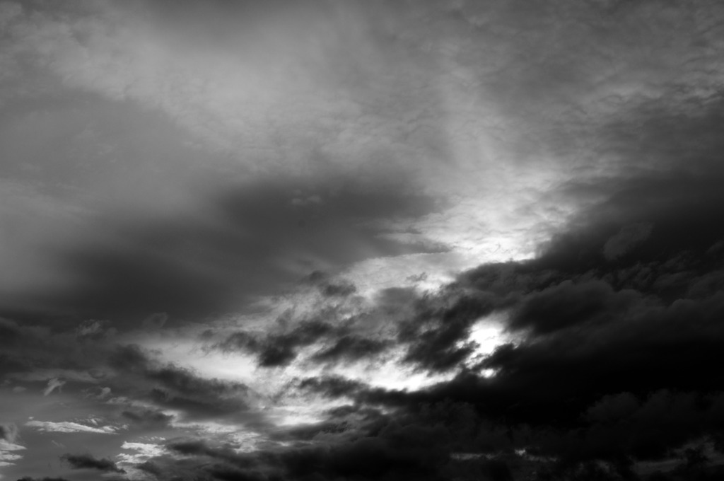 6 different scenes, black and white from color images. A strange contrast is created by editing the different color channels separately. This reveals additional structure hidden under the otherwise colorful clouds.